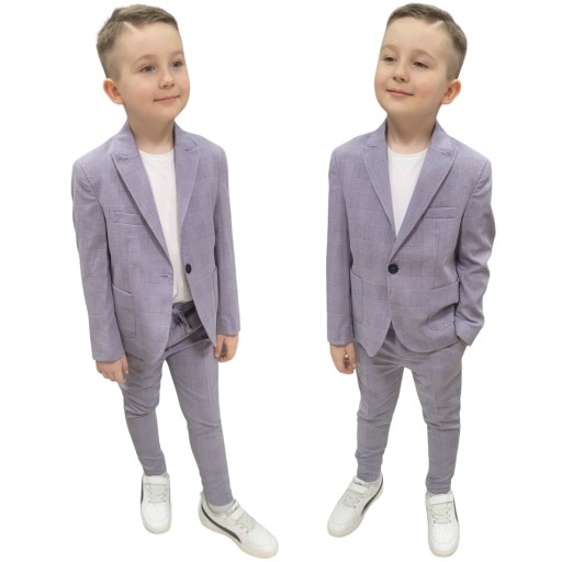 Zapraszamy do zapoznania się z naszą wyjątkową ofertą - garnitur sportowy dla chłopca w modną kratę, który łączy w sobie elegancję z nowoczesnym designem. Idealny na różnorodne okazje, od uroczystych wydarzeń po mniej formalne spotkania. W zestawie otrzymasz stylową marynarkę, wygodne spodnie oraz koszulkę z krótkim rękawem GRATIS!