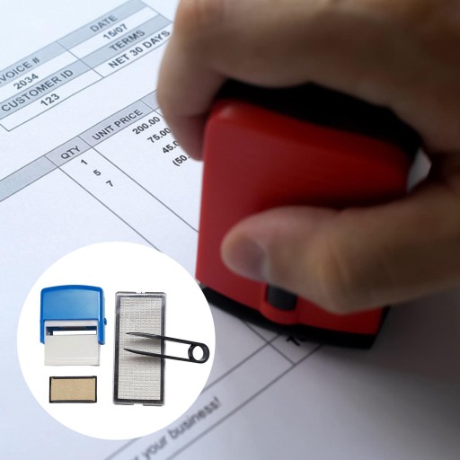 Zawiera pęsetę, atrament, nadrukowaną pieczęć i tablicę z napisami, dwuliniową lub wieloliniową treść drukowania można łatwo usunąć i wymienić.