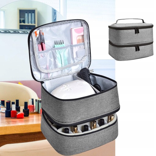 Dwuwarstwowa torba do przechowywania paznokci Organizer Przenośna kosmetyczka Szara