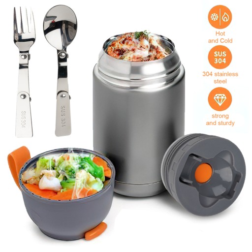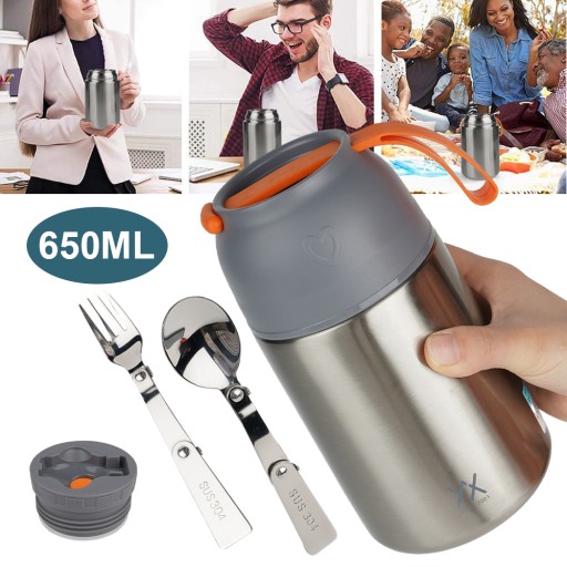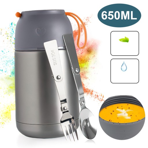 ОБЕДЕННЫЙ ТЕРМОС ДЛЯ ПИЩЕВЫХ НЕРЖАВЕЮЩЕЙ СТАЛИ 650 МЛ С ЛОЖКОЙ И ВИЛКОЙ