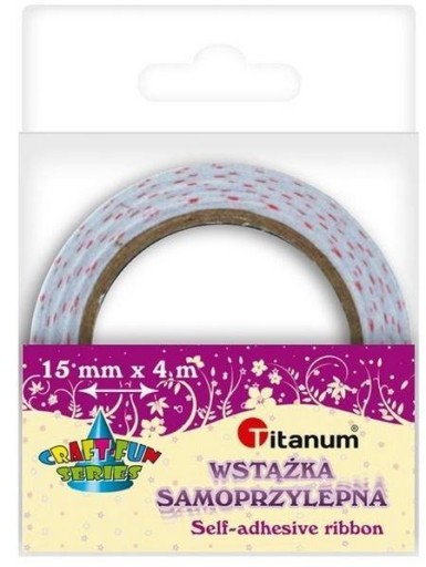 Wstążka samoprzylepna tekstylna 15mm x 4m ecru w różowe groszki