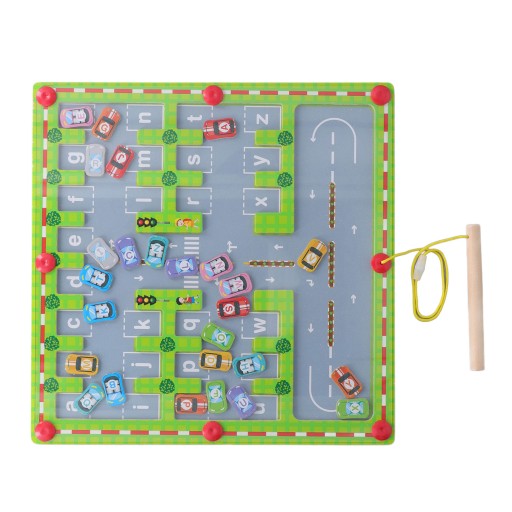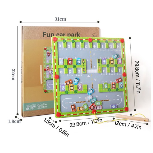 Cecha: 1. POPRAWIA UMIEJĘTNOŚCI RUCHU PRECYZYJNEGO: Drewniany kształt tego magnetycznego labiryntu parkingowego pomaga dzieciom ćwiczyć mięśnie dłoni i rozwijać umiejętności motoryczne, poprawiając ich zdolność do chwytania i koordynowania ruchów dłoni i oczu.