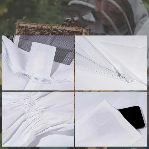 🌷BEZPIECZNA I KOMPLETNA OCHRONA Strój pszczelarza posiada wytrzymałe zamki błyskawiczne od kroku do welonu, na każdej kostce i wokół kaptura. Dwustronny zamek błyskawiczny z kapturem zachodzi na siebie i jest przykryty klapką, aby zapewnić całkowitą osłonę i dodatkową ochronę.