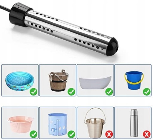 Łatwy w obsłudze: zanurz w wodzie do odpowiedniego poziomu i podłącz do dowolnego gniazdka elektrycznego. Następnie grzałka zanurzeniowa jest gotowa do pracy.