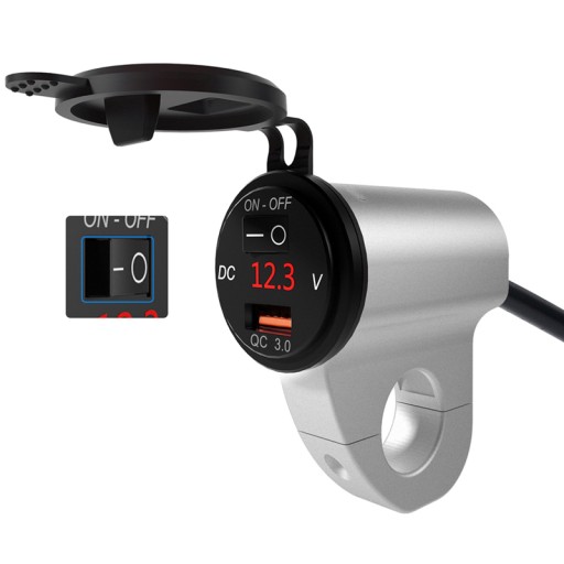 ŁADOWARKA MOTOCYKL 3,4A USB QC3.0 WOLTOMIERZ 12V - Srebro