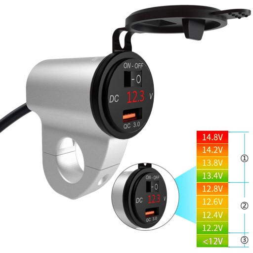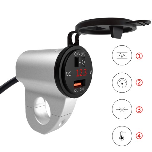 ЗАРЯДНОЕ УСТРОЙСТВО ДЛЯ МОТОЦИКЛА 3.4A USB QC3.0 ВОЛЬТМЕТР 12В