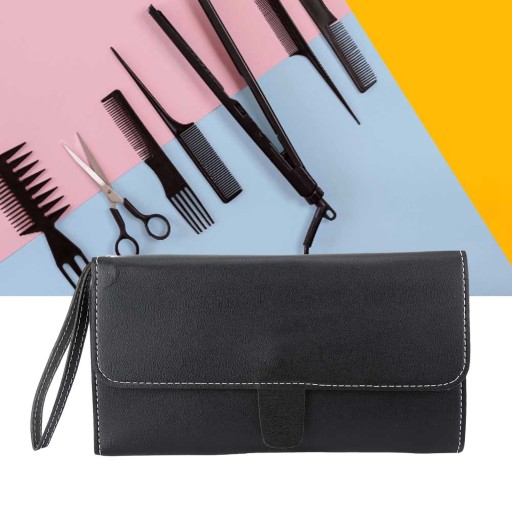 . Czarny PU Nożyczki Fryzjerskie Grzebień Salon