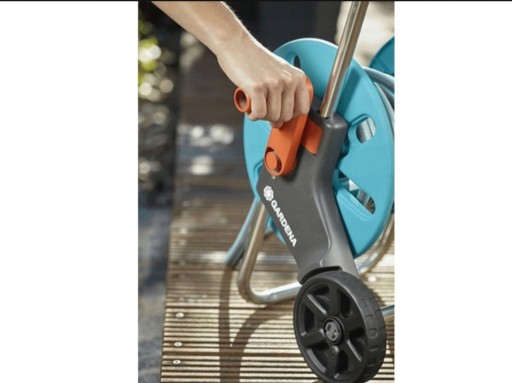 Wózek GARDENA z wężem ogrodowym 25 m wyposażony w korbkę umożliwiającą łatwe rozwijanie/zwijanie węża oraz kółka ułatwiające przenoszenie całości z miejsca na miejsce