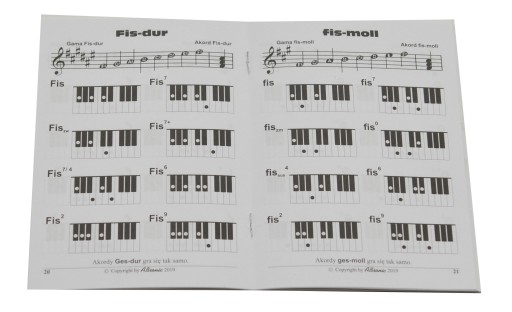 Opracowanie G. Templin. Kieszonkowe wydanie zawierające krótką teorię budowy oraz rysunki 192 akordów na instrumenty klawiszowe. 40 str. A6, miękka oprawa.