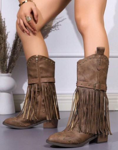 KOZAKI KOWBOJKI DAMSKIE BRĄZOWE Z FRĘDZLAMI