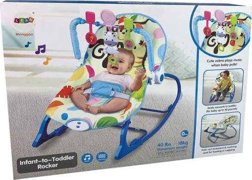 Kołyska Bujaczek Fotelik Krzesełko 2w1 Niebieski Zebra Dźwięki Wibracja Wygodny fotelik, w którym maluszek może odpoczywać i oddawać się zabawie, jest bardzo istotny podczas kompletowania wyprawki dla niemowlaka. Prezentujemy zielony bujaczek ozdobiony motywem bajkowym Zaciekawi każdego malucha. Zaprojektowano go z myślą o noworodkach i starszych maluchach. Mogą z niego korzystać dzieci do 3 roku życia. Maksymalne obciążenie to aż 18 kg. Kołysanie to naturalny ruch dla Twojego dziecka, przypominający błogi czas spędzony w brzuszku mamy. Twój maluch kołysanie traktuje jako coś znanego i bezpiecznego. To właśnie podczas kołysania się uspokaja. Leżaczek dzięki intuicyjnej obsłudze, a przede wszystkim prostej konstrukcji, może być używany na różne sposoby. Z powodzeniem wykorzystasz go jako bujaczek dla maluszka, a także jako klasyczny fotelik dla dziecka, który rozłożysz w każdych warunkach. Wielofunkcyjność siedziska dla malucha sprawia, że możecie zabrać go ze sobą wszędzie, a w zależności od sytuacji zmienić jego zastosowanie. Dodatkowo nad siedziskiem znajduje się okrąg z przyjaznymi małymi maskotkami. Zebra po pociągnięciu za rączkę odtwarza muzykę, a boczne wiszące kolorowe zabawki przypominające zwierzątka stymulują zmysł dziecka. Ten fotelik rośnie razem z dzieckiem ! Gdy dziecko urośnie, wystarczy usunąć pasy zabezpieczające. Zawieszki z pewnością przyciągną uwagę dziecka, zachęcając do treningu rączek i zabawy. Bujak ukoi zmysły dziecka, pomoże w zasypianiu, dzięki wibracją. Posiada następujące funkcje: -siedzisko odchylane w 2 pozycjach - możliwość prania tkaniny w pralce - uspokajające wibracje, ułatwiające zasypianie - głębokie siedzisko - 3- punktowy pas zabezpieczający - wyjmowany okrąg z zabawkami, którego można zmienić pozycję do przodu bądź do tyłu Wymiary krzesełka: 64 cm x 40 cm x 66 cm Wymiary siedziska: długość- 71 cm szerokość- 40 cm max głębokość siedziska- 15 cm Wymiary wiszących zabawki: około 14 cm x 10 cm x 4 cm Wysokość okręgu od bujaczka: około 30 cm Długość okręgu: około 72 cm Wymiary opakowania: 53 cm x 39 cm x 9 cm Bujaczek zasilany jest 3 sztukami baterii AA 1,5V, które nie są dołączone do zestawu, natomiast zebra posiada dwie baterie AG13. Przeznaczony dla dzieci od pierwszych dni życia. Zgodny z normą EN71. Zabawka wykonana jest z certyfikowanego materiału.