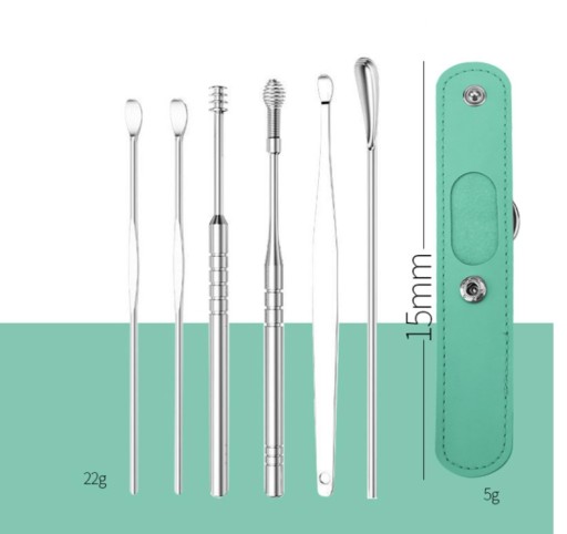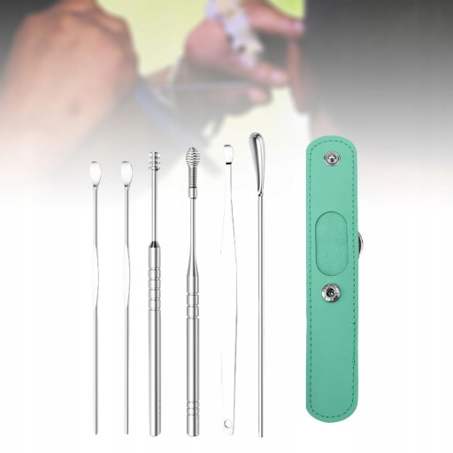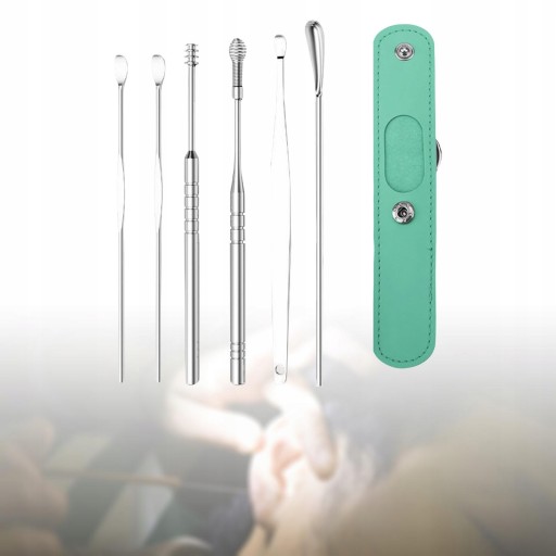 6 Szt. Narzędzie Do Usuwania Woskowiny Gładka Torba Do Przechowywania PU Przenośna Do Pielęgnacji Uszu Zielona