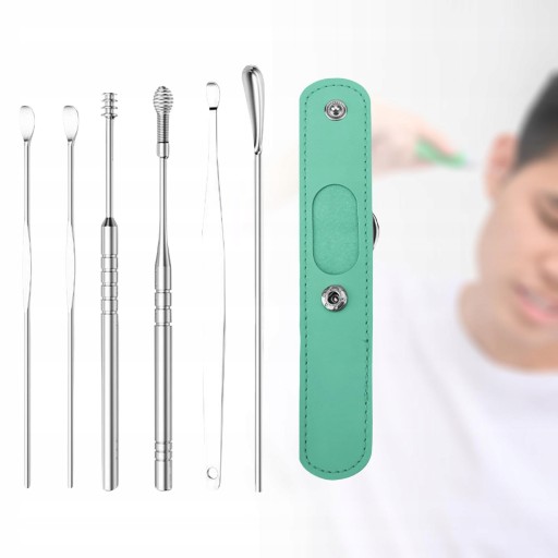 Zestaw do uszu 6 w 1: Profesjonalny zestaw do uszu zawiera 6 patyczków do uszu w jednym zestawie W tym 1x spiralny zaczep , 1x sprężynowy zaczep , 1x zaczep z kroplą , 2x mały zaczep , 1x łyżka do dużego Curve Trwały materiał: Nadaje się do codziennego czyszczenia woskowiną i kanału słuchowego