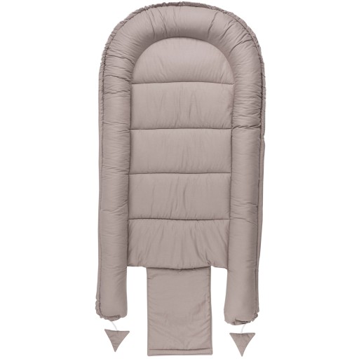 Gniazdko doskonale służy także starszym maluszkom stając się idealną przestrzenią do zabawy, leżenia na brzuszku i pierwszych ćwiczeń – podnoszenia główki czy leżących w jego zasięgu grzechotek. Rozwiązanie sznurków pozwala na używanie kokonu jako przewijaka.