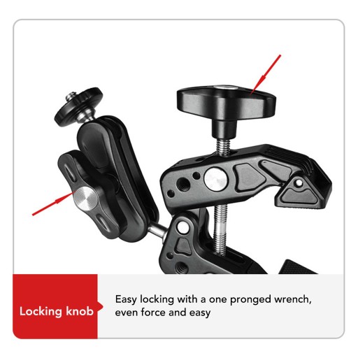 4. Łatwy mechanizm blokujący: wyposażony w wygodną blokadę kluczem obsługiwanym jedną ręką, ten zacisk adaptera aparatu zapewnia jednolite i łatwe blokowanie za pomocą prostego pokrętła.