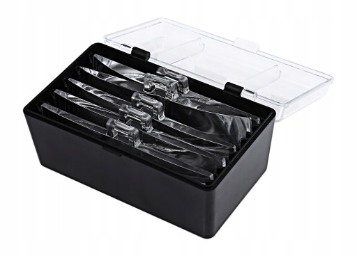 Lupa posiada 5 różnych i wymiennych szkieł powiększających, zapakowane w specjalnym pudełku ułatwiający przechowanie. Cały zestaw zapakowany jest w eleganckie pudełko, idealnie nadające się na prezent lub upominek.