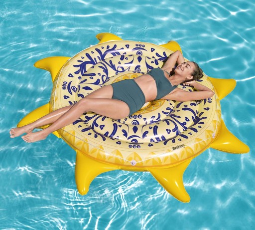 Ten materac przykuje uwagę! Jest w kształcie słońca. Jego średnica wynosi aż 226.0 cm. Został wykonany z trwałych materiałów. Po złożeniu zajmuje mało miejsca.
