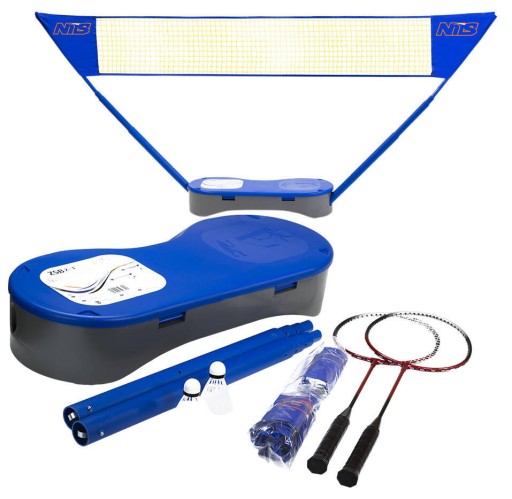ZSB 2 w 1 Nils to mobilny zestaw do gier rakietowych, w którego skład wchodzą siatka, paletki i lotki do gry w badmintona oraz siatka do gry w tenisa.