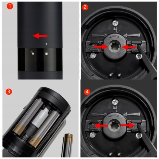 - Ten zestaw zawiera: elektryczny młynek do pieprzu (czarny)*1, elektryczny młynek do pieprzu (biały)*1