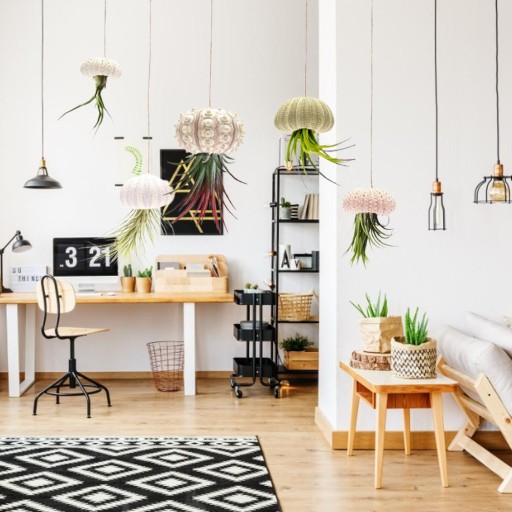4: Umieść rośliny powietrzne i przewlecz przez wiszącą doniczkę z muszli jeżowca, a następnie zawieś je przed stołami, oknami, drzwiami itp., aby dodać niepowtarzalną atmosferę i odrobinę koloru do swojego domu.