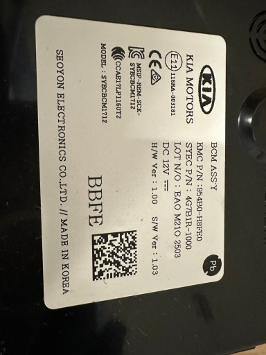 Zestaw startowy Kia Stonic 1.0 benzyna Hev - manual 2021 Key less , nr sterowników 39106-07050 , 95441-26EE0 , 954B0-H8FE0 , 95480-H8530 , 81900-F9700
