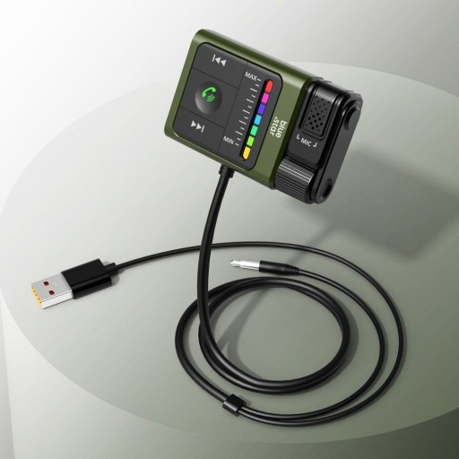 ☑️W zestawie znajduje się wbudowany 1-metrowy kabel audio oraz kabel zasilający USB, co eliminuje potrzebę korzystania z dodatkowych przewodów. Dzięki magnesowi transmiter można łatwo przymocować do deski rozdzielczej w samochodzie, co ułatwia obsługę.