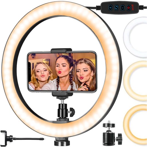 Lampa pierścieniowa LED fotograficzna do zdjęć makijażu + uchwyt na telefon