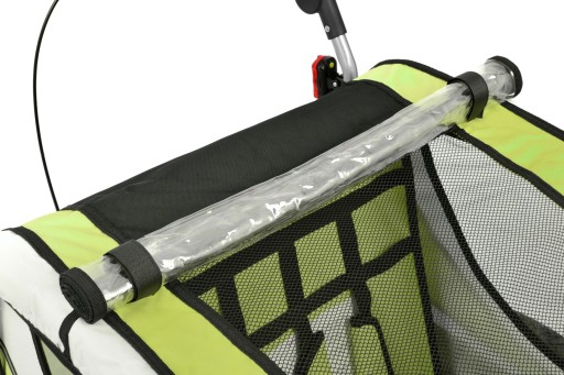 Dodatkowo nasza przyczepka została wyposażona w folię przeciwdeszczową, dzięki czemu nawet niespodziewane sytuacje podczas rowerowych wypraw nie będą wpływać na komfort dzieci.