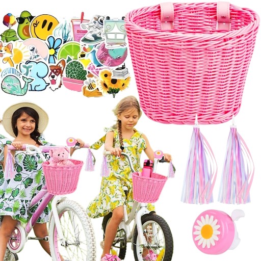 ✔️ RÓŻOWY KOSZYK NA ROWER + DZWONEK + FRĘDZLE + NAKLEJKI WIELE RADOŚCI !