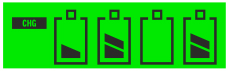 4 ogniwa naładowane. Brak podświetlenia i napisu "CHG"