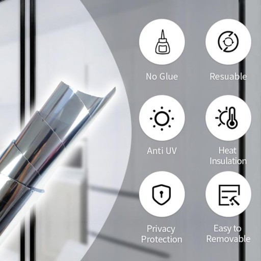 Samoprzylepna folia lustrzana na okna zapewnia całkowitą prywatność! Folia lustrzana na okna zabezpieczające prywatność w pomieszczeniu, ale jednocześnie pozwala na niezakłócony widok z otoczenia, ponieważ folia jest tylko lekko poruszona i nie wpływa na przezroczystość szkła.