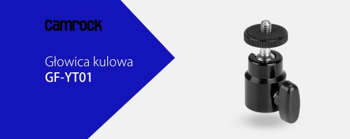 Camrock GF-YT01 to mini głowica kulowa wykonana z metalu oraz wytrzymałego tworzywa sztucznego. Została wyposażona w standardowe mocowania statywowe 1/4″ (męskie i żeńskie). Można na niej zamontować lekki aparat kompaktowy, kamerkę sportową, uchwyt na smartfona, lampkę LED, mikrofon lub inne drobne akcesoria.