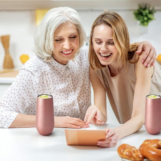 🍷 Izolowana technologia: zestaw kieliszków do wina w kolorze różowego złota jest wyposażony w technologię próżniową z podwójnymi ściankami, aby utrzymać napoje gorące przez 3 godziny i zimne przez około 5 godzin. Ten wyjątkowy kubek jest optymalnym towarzyszem do szampana i koktajli lub innych napojów.