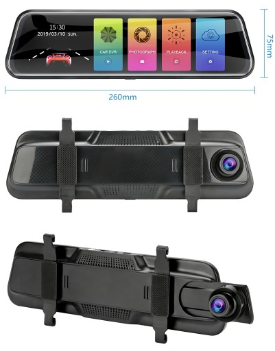Rejestrator samochodowy w lusterku z kamerą cofania