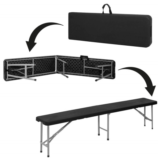 Składana ławka posiada wygodne siedzisko z materiału HDPE, który został użyty również dla blatu stołu. Jest on odporny na zmienne warunki atmosferyczne. Łatwe czyszczenie tego materiału jest jego zdecydowaną zaletą.