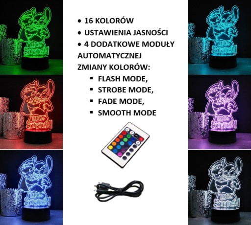 ЛИЛО И СТИЧ 3D СВЕТОДИОДНЫЙ НОЧНИК RGB ЦВЕТА ПУЛЬТ ДИСТАНЦИОННОГО УПРАВЛЕНИЯ
