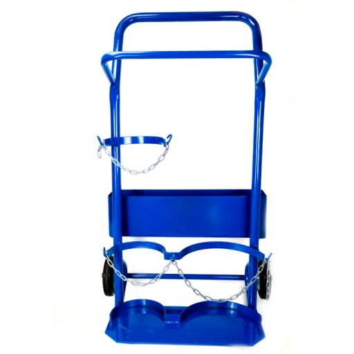 Wysokiej jakości ręczny dwubutlowy wózek (stelaż) przeznaczony do przenoszenia/transportu butli tlenowej (8l) oraz butli propan/butan (3 kg). Wózek jest wyposażony w kółka. Jest wykonany ze stalowej, trwałej i solidnej konstrukcji. Dodatkowo wózek jest wyposażony w skrzynkę na narzędzia.