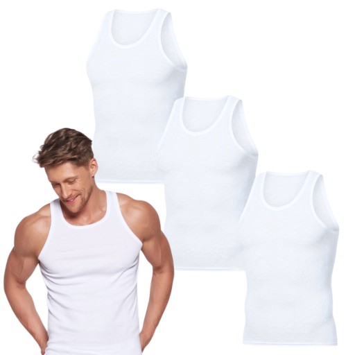 Koszulka na ramiączkach wykonana w 100% z miękkiej bawełny, świetnie przylega do ciała i podkreśla męską sylwetkę pozostawiając uczucie komfortu. Charakteryzuje się szerszymi ramiączkami, prążkowanym materiałem oraz okrągłym dekoltem.