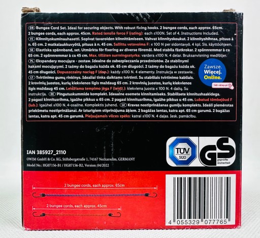 - 2 gumy bagażowe czerwone, każda o długości ok. 45 cm