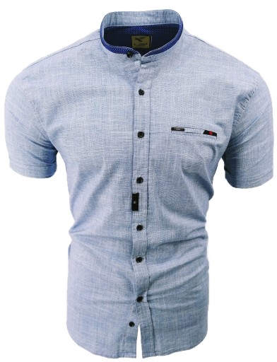 РУБАШКА МУЖСКАЯ, СИНАЯ КОРОТКИЙ РУКАВ, ВОРОТНИК-СТОЙКА, SDN 850, M 39/40