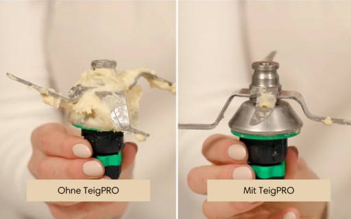 Warto dodać, że po użyciu TeigPRO można go łatwo spłukać letnią wodą lub umyć w zmywarce przy temperaturze 60°C. To tak proste! Jednak zwracamy uwagę, aby nie korzystać z programu czyszczenia Thermomixa z TeigPRO, ponieważ działa on na wyższym poziomie. TeigPRO można obsługiwać tylko na poziomie 3.