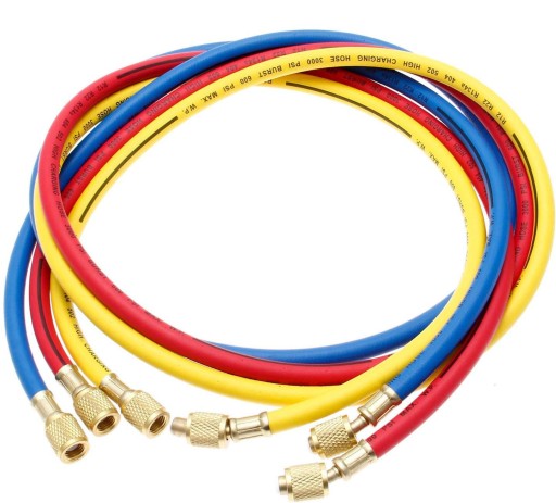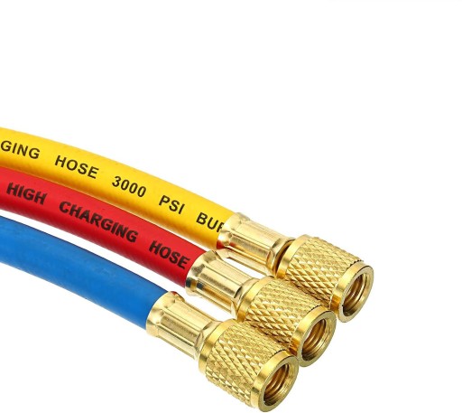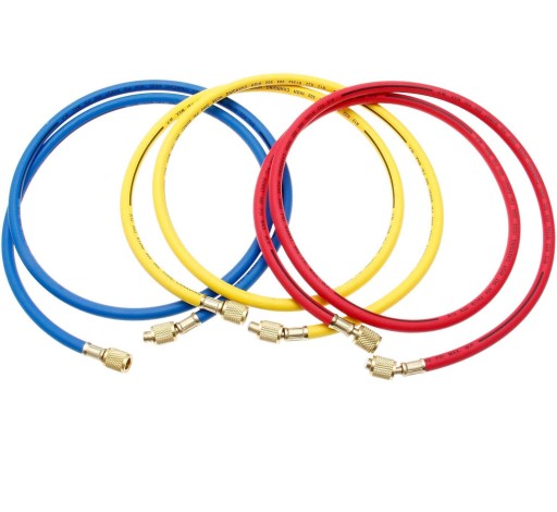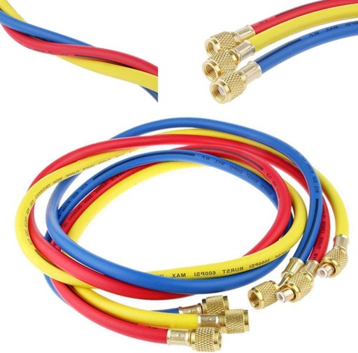 Przewody posiadają standardowe przyłącza stosowane przy manometrach do czynnika chłodniczego lub przy stacjach klimatyzacji.