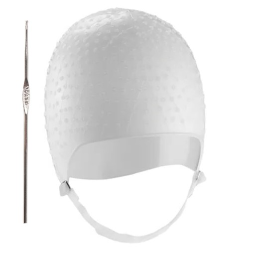 3. Łatwy w użyciu: załóż silikonowy kapelusz podkreślający na głowę i użyj haczyka, aby przebić otwory zgodnie z twoimi potrzebami, wybierz włosy za pomocą igły haczykowej, a następnie możesz rozpocząć umieranie.