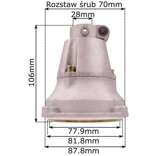 ✅Jeżeli kosz / bęben sprzęgła (element łączący silnik kosy z rurą) ma rozstaw śrub wynoszący: ~ 70 MM / 7 x 7 cm (otwory mierzone od środka do środka)