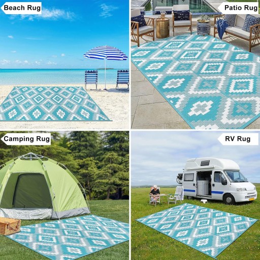 ⭐️Dywan zewnętrzny 120 x 180 cm, wodoodporny, lekki plastikowy dywan ze słomy, dwustronny, płaski splot, mata tarasowa, z recyklingu, przenośny dywan⭐️