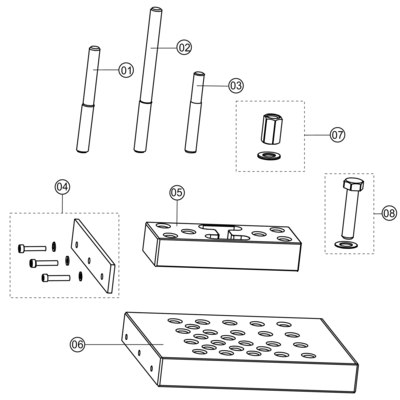 - 5 stalowych gwintowanych prętów regulacyjnych oraz klocek dystansowy zapewniają precyzyjne wsparcie i wszechstronność