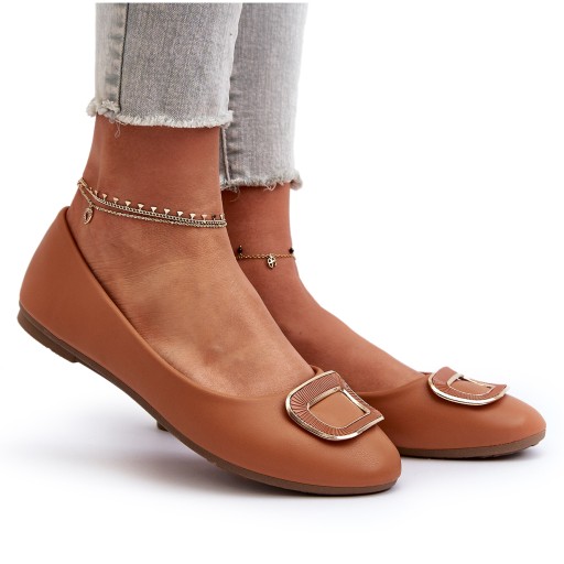 Baleriny Z Ozdobą Eko Skórzane Camel Enicoria - rozmiar 38