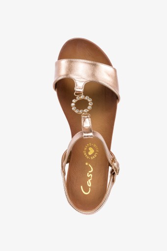 Szampańskie sandały damskie model K24X11-G zostały wykonane z wysokogatunkowej skóry ekologicznej, co gwarantuje doskonałą jakość i dopasowanie do stopy. Zastanawiasz się, jak podkreślić swoją elegancję w cieplejsze dni? Pozwól sobie na odrobinę luksusu, sięgając po złote, błyszczące sandały. Ich subtelną barwę podkreślają migoczące kryształki, które dodają im wyjątkowego blasku. W każdym kroku poczujesz, jak te niezwykłe ozdoby tańczą w słońcu, mieniąc się w różnych barwach i przyciągając spojrzenia przechodniów. Jednak to nie tylko wygląd sprawia, że te sandały są wyjątkowe. Płaska podeszwa gwarantuje komfort noszenia przez cały dzień, bez obaw o zmęczone stopy. Dzięki temu są one idealne zarówno na długie spacery, jak i na co dzień. Dopełnieniem ich praktyczności jest zapięcie w formie kalmerki, które umożliwia szybkie zakładanie i zdejmowanie butów, jednocześnie zapewniając stabilność i pewność kroku. To nie tylko modny dodatek do letniej garderoby. To przede wszystkim obietnica komfortu, stylu i klasy, którą doceni każda kobieta. Wybierając je, inwestujesz w jakość i unikalny design, który odmieni Twój letni look. Nie czekaj więc, zaskocz wszystkich swoim wyjątkowym stylem i poczuj się zjawiskowo każdego dnia. Szampańskie sandały, błyszczące z kryształkami czekają na Ciebie. Spraw sobie odrobinę luksusu, na który zasługujesz.