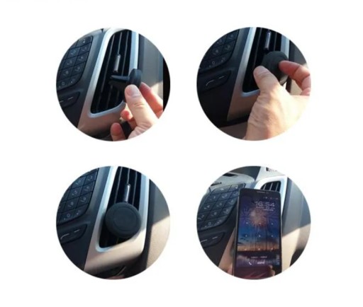 Posiada silny magnes oraz element montażowy na kratkę nawiewu wraz głowicą obrotową. Do zestawu dołączono okrągłą oraz prostokątną blaszkę , dzięki której skorzystasz z uchwytu na każdym telefonie!