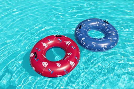 Wybierając się nad wodę warto zabrać ze sobą wszystkie niezbędne akcesoria basenowe, świetnym dodatkiem do wodnego relaksu i zabawy będzie również dmuchane koło do pływania. Koło przeznaczone jest dla dzieci od 12 roku życia oraz wszystkich dorosłych. Jego średnica wynosi 119 cm. Koło jest wygodne i stabilne na wodzie. Dodatkowy komfort z użytkowania zapewniają wygodne uchwyty. Koło wykonane jest z wytrzymałego materiału PVC odpornego na uszkodzenia i działanie promieni słonecznych.